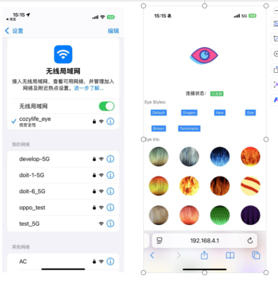 - Enter the eye effect control page to perform operations such as image switching, animation adjustment, and custom uploads.